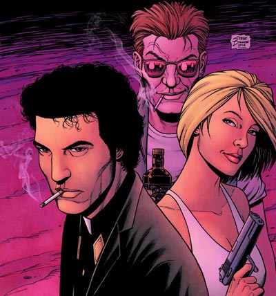Lorsque DC relance son label Vertigo, l’objectif est clair. Proposer aux lecteurs adultes des récits plus audacieux. Plus sombres aussi. Peu de séries incarnent aussi bien cette ambition que Preacher, imaginée par Garth Ennis et dessinée par Steve Dillon. On y suit Jesse Custer, ancien délinquant texan devenu pasteur malgré lui. Il hérite d’un pouvoir né de l’union improbable d’un ange et d’un démon. Et le voilà embarqué dans une quête insensée : retrouver Dieu en personne. À ses côtés, son ex Tulip et un vampire irlandais passablement alcoolisé. Le ton flirte avec le blasphème, mais il assume tout.