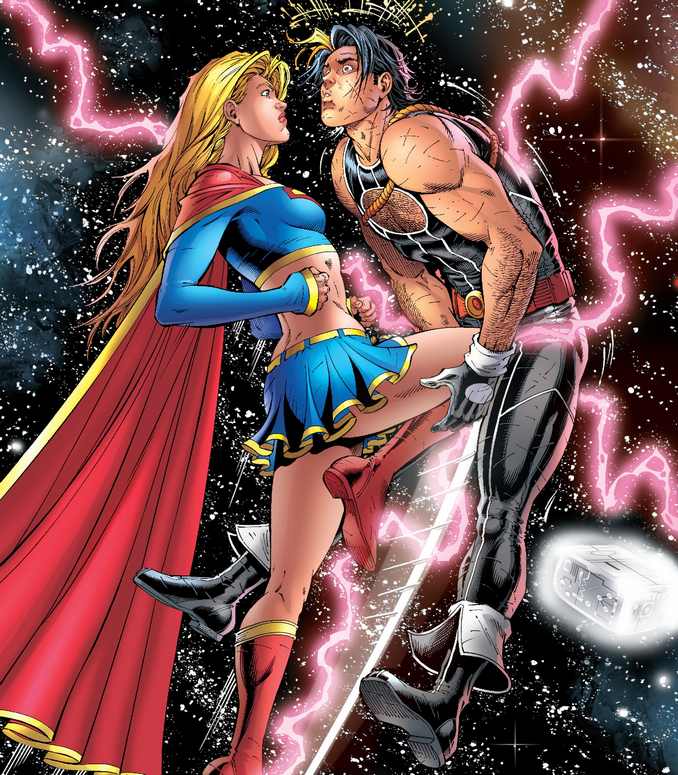 Passons à la véritable Kara Zor-El. Dans les comics modernes, Supergirl a du mal à trouver sa place sur Terre. A peine a-t-elle fait son apparition qu’elle est enlevée sur Apokolips pour devenir l’une des Furies de Darkseid. Superman et Batman viennent la libérer, mais Kara a attiré l’attention d’un jeune Néo-Dieu d’Apokolips, Power Boy. Ce dernier la suit à son retour sur Terre. Pendant ce temps, Kara essaie de s’adapter. Humiliée lorsqu’elle tente de prendre l’identité secrète d’une étudiante, elle propose à Nightwing de rejoindre les Outsiders. Cependant, sa mission prend un tournant violent et une supervilaine transperce son corps. C’est alors que Power Boy fait son apparition et l’emmène à STARLabs pour la faire soigner. A son réveil, Supergirl rencontre son sauveur et tombe sous son charme. Les 2 jeunes gens sortent en couple et se plaisent. Mais lorsque Supergirl ignore Power Boy pour s’inquiéter d’un autre ami blessé, le Néo-Dieu l’attaque par derrière, en lui reprochant de le forcer à la frapper. Il enchaîne Kara avant de l’emmener dans son repère, où il a créé un autel rempli de photos de Kara. Découvrant l’obsession malsaine de Power Boy, Kara se libère en lui brûlant au passage la main. Quelques dents cassées et un violent coup de genoux dans l’entrejambe mettent fin à cette relation abusive.