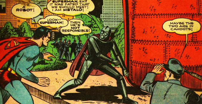 Bien qu’il partage un nom proche du cyborg alimenté au kryptonite, Metallo, ce Metalo (avec un seul « L », lui) est un méchant totalement différent. Apparu durant l’Âge d’or des comics, ce personnage était un scientifique qui portait une armure et utilisait un « sérum de force », lui permettant de se mesurer à Superman sur un pied d’égalité.