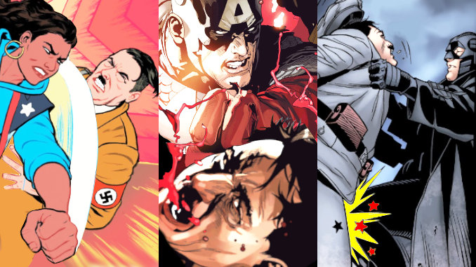Outils de propagande, les comics de la 2de Guerre mondiale affichent souvent des couvertures où les héros s’attaquent directement aux dictateurs nazis. Même avant l’entrée en guerre des États-Unis, Captain America Comics n°1 montre un Captain America portant un coup historique à Adolf Hitler. Pourtant, dans les histoires elles-mêmes, les superhéros ne s’attaquent que rarement au Führer. Et pour cause, la guerre finirait rapidement ! Voici donc 15 personnages qui s’attaquent vraiment à Adolf Hitler, et n’hésitent pas à le démolir !
