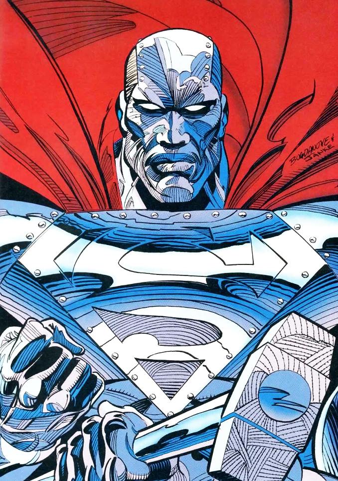 L’affrontement entre Superman et Doomsday semble fatal à l’Homme d’Acier. Alors que le monde pleure la perte du héros, des prétendants à sa succession apparaissent. Supergirl, Lex Luthor II et ses hommes d’abord. Puis des pseudos Superman : le jeune clone Superboy, le violent Man of Tomorrow ou encore le mystérieux Cyborg Superman. Lois Lane cherche en vain à retrouver son compagnon parmi eux. Cependant, elle trouve l’héritier spirituel de Superman en Steel, le seul qui ne prétend pas être le véritable Kal-El. Il s’agit de l’afro-américain John Henry Irons, dont l’histoire est assez proche de celle de Tony Stark. Ingénieur en armement, il voit son arme tomber entre les mains de gangs. Ses supérieurs tentent de le forcer à continuer de travailler pour eux. John feint sa mort et se rend à Metropolis. Lors d’un accident sur un chantier, Superman lui sauve la vie. Lorsque Superman lui-même semble mourir, Irons construit une armure qu’il utilise en mémoire du « Man of Steel » dont il reprend le surnom avant de le raccourcir en Steel. Il reste actif malgré le retour de Superman et devient membre d’une incarnation de la JLA.