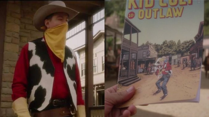 Dans le genre apparition furtive… Voici Kid Colt ! Ce personnage remonte à l’époque des westerns que produisaient Marvel. Kid Colt manie ses 2 Colt .45 et possède un cheval appela Steel. La série Agent Carter mentionne l’existence d’un Kid Colt dans un épisode de la saison 2. Howard Stark parle du personnage, montre même une illustration, mais précise que Kid Colt existe bien.