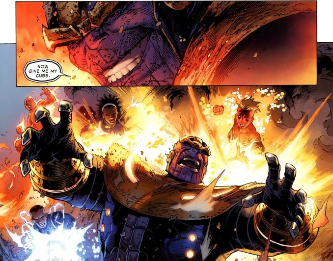 La saga Civil War II a opposé les partisans d’Iron Man et de Captain Marvel sur les capacités de l’Inhumain Ulysses, qui prédit l’avenir. Le début de cet évènement montre cependant Thanos, qui veut récupérer le Cube Cosmique dans le Projet Pegasus, vu dans Captain Marvel. Ulysses a prévenu tous les héros, qui parviennent à le stopper – mais War Machine meurt, et Miss Hulk est lourdement blessée. Une victoire à la Pyrrhus contre Thanos.