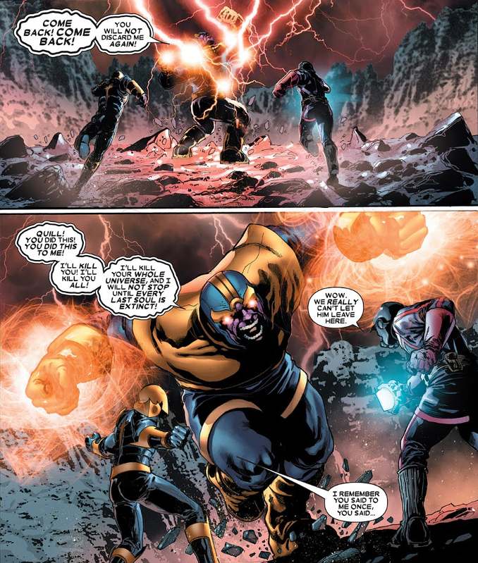 A la fin de Thanos Imperative, Thanos est enragé que la Mort se désintéresse de lui. Tandis que le Cancerverse s’écroule, il promet d’anéantir l’univers classique pour se venger ; mais Starlord et Nova refusent. Tous deux se sacrifient pour retenir Thanos dans le Cancerverse.