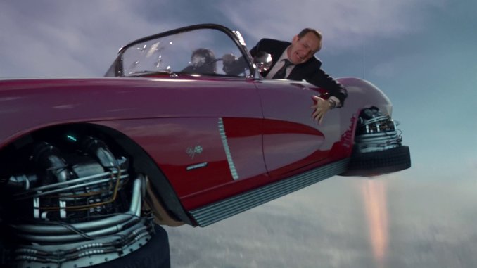 Dans Captain America : First Avenger, au cours d’une conférence dans les années 40, Howard Stark annonce que dans quelques années, les voitures voleront. Et pour le prouver, il fait une démonstration de sa toute dernière technologie de voiture volante… qui tourne mal et s’avère loin de convaincre l’assistance. Si le public est dubitatif, Stark avait pourtant raison ! Car dans l 1er épisode de la série télévisée Les Agents du SHIELD, qui se déroule à notre époque, Phil Coulson est tout fier de montrer sa voiture volante !