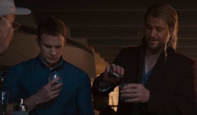 Dans Captain America : first Avenger, Steve Rogers apprend que Bucky est mort. Il fonce droit dans un bar avec l’espoir de noyer son chagrin au fond d’une bouteille. Hélas pour lui à ce moment-là, il découvre un des effets du sérum du Super-Soldat : l’alcool n’a plus d’effet sur son organisme. On apprend par la suite par l’Agent Carter que c’était un effet que le Dr Erskine, le créateur du sérum, avait deviné.