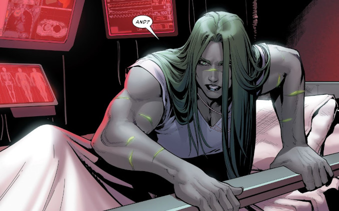 She-Hulk tient un rôle important dans la saga Civil War II. Dans cette grosse aventure, les principaux super-héros Marvel s’affrontent autour du cas d’Ulysses Cain, un Inhumain capable de prédire l’avenir. Après un combat très violent, She-Hulk est hospitalisée. À son réveil, elle apprend de terribles nouvelles. Pendant son coma, Hawkeye a assassiné Bruce Banner. Traumatisée à la fin de Civil War II, Jennifer Walters abandonne sa carrière de super-héroïne pour se concentrer sur sa carrière d’avocate.