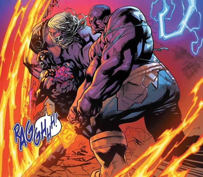 Thanos transperce Hulk et le Silver Surfer avec l’Épée de Surtur