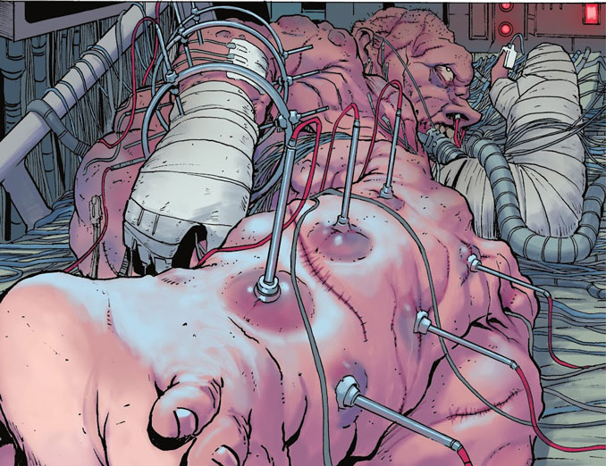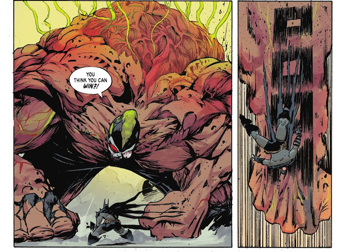 On se doutait que les amis d’enfance de Bruce étaient promis à un sort funeste. Leurs noms suffisaient à vendre la mèche. Pourtant, la brutalité et la rapidité de cette descente aux enfers surprennent. Harvey Dent hérite bien de son visage brisé, mais d’une manière encore plus sombre que d’habitude, à cause de Bane. Oswald « Ozzie »Cobblepot finit littéralement broyé, réduit à une silhouette tordue qui évoque davantage un film d’horreur qu’un comics de super-héros classique. Quant à Edward Nygma, ses propres talents se retournent contre lui dans une séquence profondément dérangeante. Le body horror atteint ici un niveau qui pourra en choquer certains. Cependant, après ce que Bruce et Waylon Jones ont déjà enduré ces derniers numéros, rien n’a vraiment d’illogique.