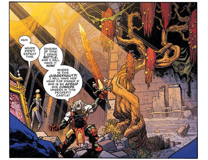 Le vrai plaisir de lecture vient sans doute de là. Robert Kirkman refuse de jouer la série au premier degré total. Heureusement, d’ailleurs. Avec un personnage pareil, on aurait vite pu sombrer dans la pose virile un peu pénible. À la place, le scénariste glisse un humour noir très sec, presque désinvolte, qui fait souvent mouche. La relation entre le Fauve de combat et l’ordinateur de bord de son vaisseau apporte par exemple une bonne partie du sel de l’album. L’un veut mourir, l’autre aimerait beaucoup l’aider à atteindre cet objectif, et leurs échanges ont ce petit mordant sarcastique qui évite à l’ensemble de se prendre trop au sérieux. Cependant, Kirkman ne se limite pas à la vanne bien sentie. Plus l’album avance, plus il laisse apparaître une dimension triste chez son héros, mais aussi chez ses compagnons de route. Le prince rescapé Salaka, en particulier, gagne une vraie épaisseur. On comprend alors que Battle Beast ne parle pas seulement d’un guerrier qui casse des crânes. Le comics parle aussi de survivants fracassés qui avancent comme ils peuvent.