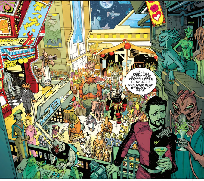 Ce qui surprend assez vite, c’est que Battle Beast ne ressemble pas tout à fait à Invincible. On reste bien dans le même univers, évidemment, mais Robert Kirkman déplace le projecteur. Exit, pour un temps, les super-héros en collants qui se cognent dessus en haut des gratte-ciel. Ici, on voyage de planète en planète, on croise des marchés galactiques, des arènes sanglantes, des flottes spatiales suicidaires et même une bonne vieille sorcière sortie d’un registre presque fantasy. Dit comme ça, on pourrait craindre le grand fourre-tout. En réalité, le mélange fonctionne étonnamment bien. Battle Beast donne ainsi l’impression que l’univers d’Invincible est bien plus vaste, plus étrange et plus vivant qu’on ne l’avait imaginé. Et ça, ce n’est pas rien. Un spin-off qui agrandit réellement son monde au lieu de juste en gratter les bords, c’est déjà une petite victoire.