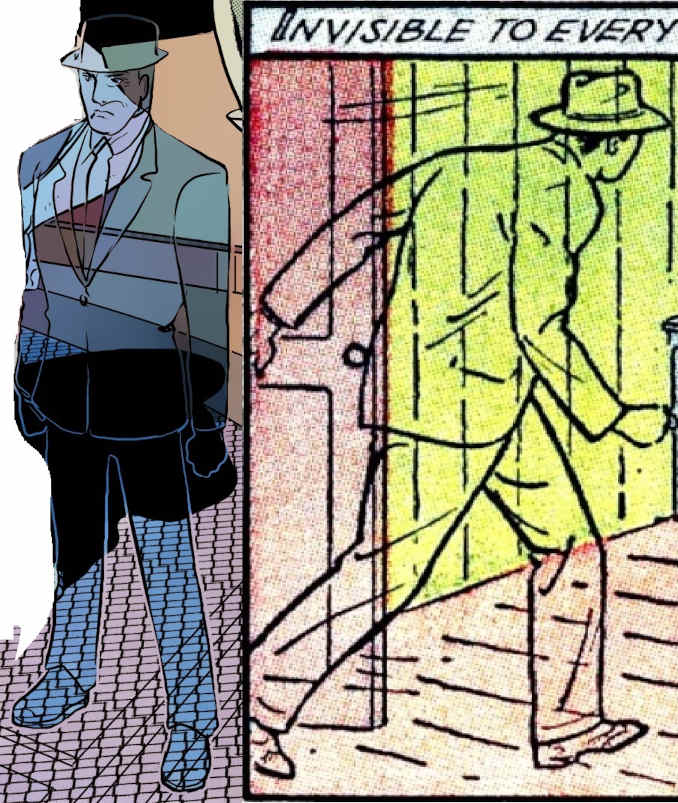 Inspiré du roman de Herbert Georges Wells, The invisible Terror est en réalité le jeune Tom Wade assistant du Dr. Cortell qui a inventé un sérum qui rend invisible. Après la mort de son mentor, Tom décide d’utiliser le sérum pour combattre le crime et délivrer les enfants du Dr Cortell kidnappé par des criminels qui cherchaient la formule du professeur. Peu original dans son concept, The invisible Terror vaut surtout pour la représentation très moderne qu’il est fait du personnage par son dessinateur (malheureusement resté inconnu) et qui rappelle les expérimentations de Steve Ditko sur ses propres personnages comme The Mocker ou Mister A.