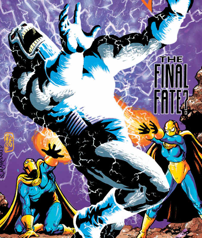 La série Doctor Fate de 1988 est inédite en France. Dans cette version, c’est un certain Eric Strauss qui porte le casque. Comme Kent Nelson avant lui, il s’agit d’un enfant artificiellement vieilli par Nabu pour devenir Dr Fate. Cependant, à la surprise de Nabu lui-même, Dr Fate évolue. En effet, Linda, la belle-mère d’Eric Strauss, fusionne avec ce dernier pour former un Dr Fate plus puissant que jamais. Elle découvre également qu’elle peut devenir Dr Fate sans lui. Mais Eric Strauss est mourant, rongé par les énergies qui ont fait de lui un adulte. A leur insu, les forces de l’Ordre et du Chaos complotent avec Darkseid pour détruire le Dr Fate. En effet, selon Darkseid, le Dr Fate est le 1er membre d’une nouvelle race d’humains qui, à terme, va menacer tant les Néo-Dieux que les êtres cosmiques. Darkseid enlève donc Eric Strauss et le transporte sur Apokolips. Malgré sa faiblesse, Eric Strauss se change en Dr Fate mais est bien trop faible pour résister aux Paradémons qui commencent à le déchiqueter. Linda Strauss se change elle aussi en Dr Fate et se rend sur Apokolips pour porter secours à Eric. Lorsqu’ils se rejoignent, ils découvrent qu’ensemble, leur force est décuplée. Néanmoins, leur situation est désespérée. C’est alors qu’ils utilisent une méthode inattendue pour vaincre Darkseid : ils partagent leur amour mutuel avec le Seigneur d’Apokolips ! Troublé, Darkseid abandonne la bataille. Cependant, l’un de ses hommes défie ses ordres et lance une arme contre Linda. Eric meurt en s’interposant.