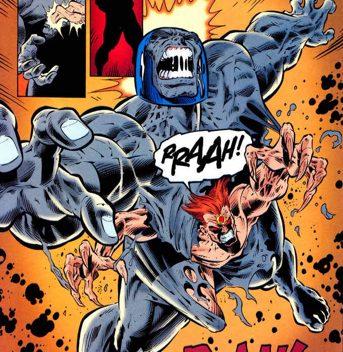 C’est écrit : le fils de Darkseid tuera son père. Et la prophétie se réalise à plusieurs reprises ! Souvent de manière métaphorique, il faut le dire. Mais il arrive à Orion de tuer Darkseid lors d’un combat épique. C’est notamment le cas de Countdown to Final Crisis où il arrache le cœur de Darkseid à mains nues ! Mais Orion avait déjà réalisé la prophétie dans la série The New Gods de 1995. Darkseid abandonne sa quête de l’équation de l’anti-vie pour une nouvelle obsession : la Source de toute chose. Quelques instants plus tard, Orion voit les habitants de Néo-Génésis s’émacier soudainement, au point d’en devenir cannibale. Le fils de Darkseid utilise sa puissance pour les ramener à la normale. Highfather lui explique que c’est un signe que la Source est attaquée. Orion réalise que Darkseid en est la cause et fonce sur Apokolips. Il arrive sur les lieux alors que Darkseid pénètre un portail menant directement à la Source. Leur combat est aussi physique que métaphysique, et ses répercussions se font ressentir dans toute la Création. Orion tente même d’extraire physiquement l’influence corruptrice en s’ouvrant l’abdomen. Mais Darkseid pousse Orion au meurtre. Celui-ci déchire alors Darkseid de l’intérieur. Mais ce meurtre au cœur de la Source va avoir de lourdes conséquences pour les Néo-Dieux. Par contre, pour le meilleur combat entre les personnages, je vous recommande Orion n°5 écrit et dessiné par l’immense Walter Simonson !