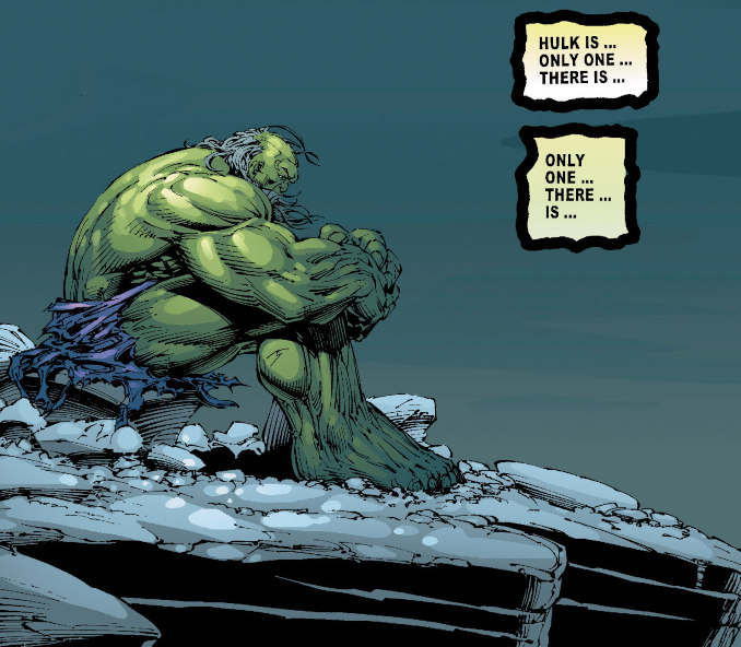 Bruce pleure la perte de tout ce qui donnait un sens à sa vie, tandis que le Hulk, paradoxalement, obtient ce qu’il a toujours désiré : être laissé seul. Ce one-shot se termine sur une note poignante et mélancolique, alors que Banner finit par succomber à la vieillesse. La dernière case révèle les pensées du Hulk : « Hulk a… froid », résumant avec une simplicité dévastatrice l’âpreté et la brutalité de cette histoire.