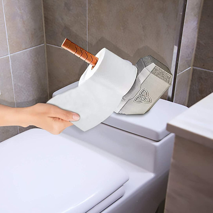 Restons dans le thème pipi-caca, si vous le voulez bien, avec ce porte rouleau papier toilette qui ravira les amateurs de Thor. Car qui n’a jamais rêvé de pouvoir stocker son PQ sur le manche de Mjolnir ? Une idée ridicule, mais à la réflexion, on s’attendrait presque à la retrouver dans Avengers : Endgame avec le Thor façon « Big Lebowski », non ?