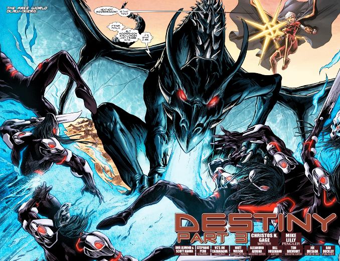 On a déjà pu évoquer sur Top Comics Heather Douglas, alias Dragon Lune; avec sa trahison des Avengers et le meurtre de son père Drax. Odin la punit en limitant ses pouvoirs jusqu’à ce qu’elle surmonte sa propre arrogance. Il la confie ensuite à Valkyrie. Les 2 femmes rejoignent alors les Défenseurs. Elle réalise alors qu’une entité nommée le Dragon de la Lune l’a corrompue toute sa vie. Elle rejette son influence et retrouve ses pouvoirs. Cependant, infectée par un virus mortel, elle accepte d’être possédée par le Dragon pour survivre. Le Dragon s’est alors retourné contre les Défenseurs et n’a pu être repoussé qu’au prix du sacrifice de 4 membres de l’équipe. Heather est revenue à la vie, débarrassée de l’influence du Dragon. Alors qu’elle entame une romance avec Phyla-Vell, fille du 1er Captain Marvel, le couple est attaqué par les armées de la Phallanx, une race mécanique assimilant les formes de vie qu’elle croise. Une voix guide Phylla vers un sauveur. Durant ces évènements, Heather est prise de violents maux de têtes qui annoncent le retour du Dragon de la Lune. En plein combat, Heather cède et prend la forme d’un dragon. Dragon Lune finit par mourir aux mains d’Ultron, qui dirige les Phallanx.