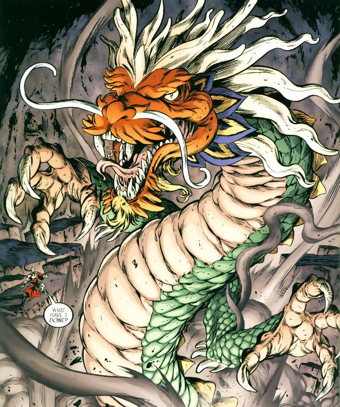 Le héros de la série Crossgen The Way of the Rat est un voleur. Il met la main sur un anneau lui donnant la maîtrise du bâton de combat et un parchemin, le Livre de l’Enfer des Dragons Affamés. Celui-ci est un portail vers une dimension peuplée de dragons prêts à dévorer les âmes de leurs victimes. Accueilli en héros dans une cité après en avoir vaincu l’oppresseur, notre antihéros est accueilli par un notable qui s’empare du parchemin. Ivre de pouvoir, il invoque les dragons, qui commencent à se dévorer mutuellement. En ressort finalement un gigantesque Dragon Empereur qui commence à détruire la ville. Le voleur tente de le ralentir en lui ouvrant le ventre, point faible habituel de ces créatures. En ressort une multitude de dragons, ceux qu’il a dévoré. Les héros finissent par renvoyer les monstres dans le parchemin, non sans une perte douloureuse dans leur rang. Un détail amusant : les couvertures des 6 numéros qui constituent cette histoire forment un tout qui montre le dragon dans toute son envergure.