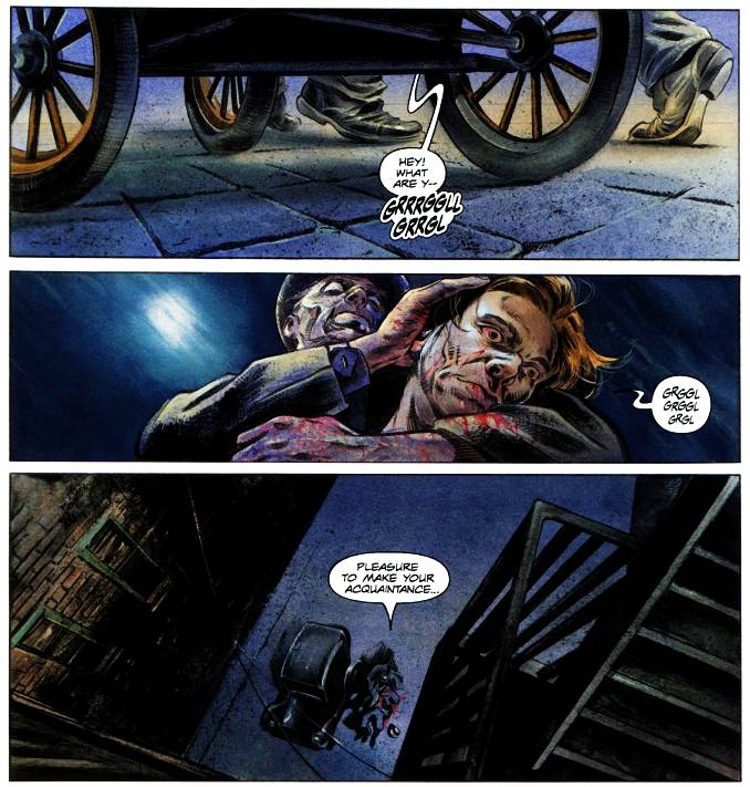 Dans Severed, on suit le destin de Jack Garron, un jeune garçon de 12 ans en fuite qui va croiser la route du Mal absolu, M. Porter. Scott Snyder écrit ce comics particulièrement violent mais pas nécessairement gore. Pourtant une scène retient notre attention. À la fin de l’épisode 2, Porter, le tueur de Severed s’attaque à un homme dans une ruelle sombre et lui brise la nuque. Là où d’habitude nous observons la scène de loin, ou en ombre chinoise, le dessinateur Attila Futaki ne nous épargne rien : le sang qui coule, le visage sadique du tueur, et surtout le regard vide de la victime. Effroyable.