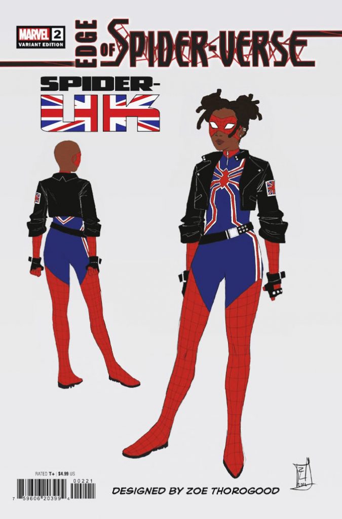 Marvel lui commande un concept art pour un nouveau perso de la série Edge of Spider-Verse : Spider-UK. Rien de plus. 100 dollars. Juste un croquis, une ébauche, pas une couverture. Sauf que Marvel, dans un moment d’inspiration façon “on va pas gaspiller”, décide de coller ce dessin brut de décoffrage en variant cover 1:10… sans prévenir Zoe Thorogood, et sans la payer comme une cover artist (ce qui coûte quelques centaines de dollars de plus, au passage). Résultat : le truc sort en rayon, les fans gueulent parce que “c’est moche”, “ça fait pas fini”, alors que la pauvre Zoe n’avait JAMAIS signé pour ça.