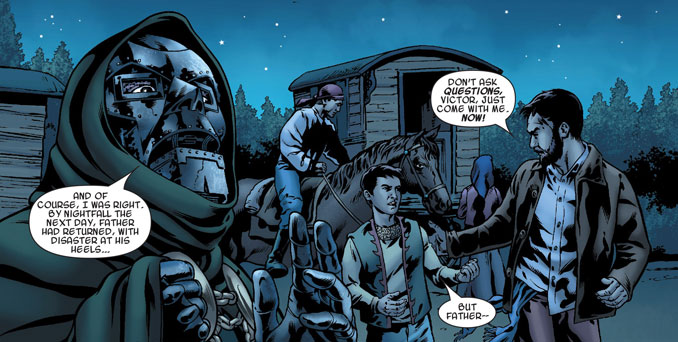 Sous ses airs de biographie autoritaire (Fatalis qui raconte sa propre vie, forcément ça donne un ton…), Le Livre de Fatalis construit surtout une tragédie. Ed Brubaker va creuser les fondations du perso : un enfant gitan persécuté, une mère magicienne damnée, un peuple écrasé par un régime violent. C’est la jeunesse de Victor Von Fatalis, mais vue avec une finesse rare. On comprend vite que son futur règne n’est pas seulement une histoire de pouvoir. C’est aussi la vengeance d’un gamin meurtri qui veut détruire ceux qui l’ont anéanti. Fatalis n’a pas seulement été façonné par la douleur : il l’a utilisé comme carburant. Et évidemment, il n’avouera jamais une seconde que ce sont ses failles qui le déterminent.