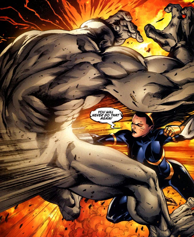 Sous la plume de Peter Milligan et les pinceaux de Mike Allred, la série X-Statix a toujours su mélanger satire et absurdité. Dans l’épisode #24, les héros se disputent avec les Avengers au sujet… du cerveau explosé de Doop (oui, vous avez bien lu). Chaque camp veut récupérer les morceaux, et les affrontements s’enchaînent aux quatre coins du globe. Sauf qu’un duel va prendre une tournure franchement inattendue : celui entre Guy Smith et Iron Man.