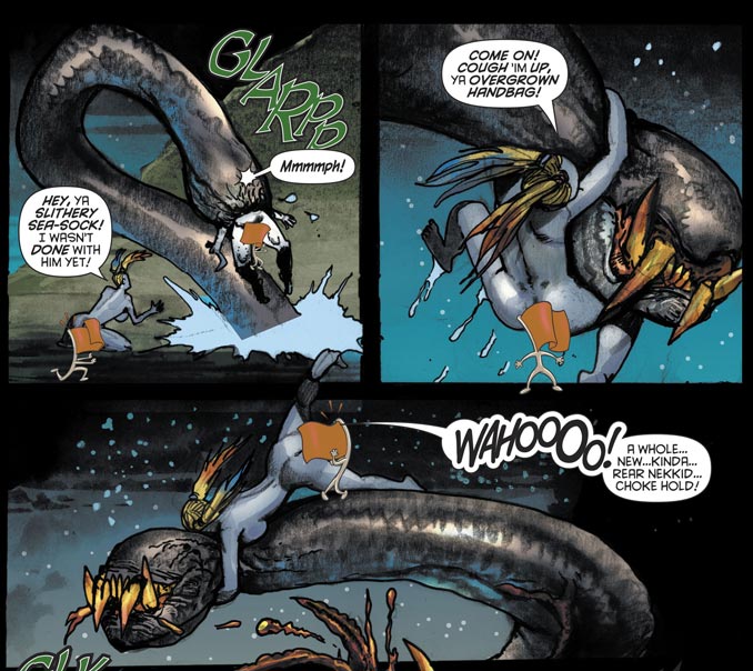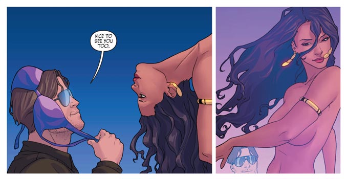 Pendant qu’elle danse, deux agents fédéraux la surveillent. L’un d’eux, un brin trop curieux, décide d’aller « enquêter » de plus près. Mauvaise idée. D’abord, il a droit à une prestation privée (professionnelle, mais pas que), puis tente de la convaincre de se rendre. Il aurait mieux fait de rester dans sa voiture : Voodoo reprend sa véritable forme d’alien, massacre le pauvre gars sans une once de remords, et repart tranquillement avec son identité. Une séquence à la fois sensuelle, gore et terriblement Wildstorm.
