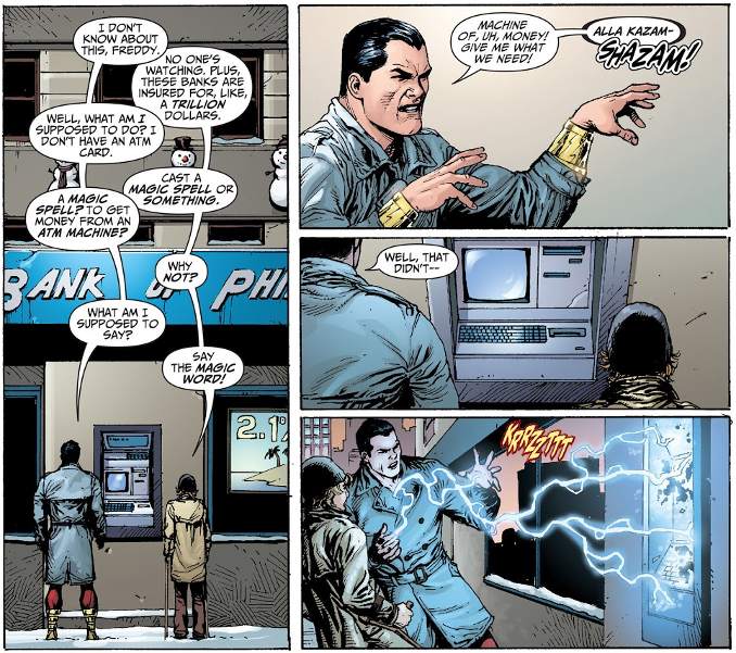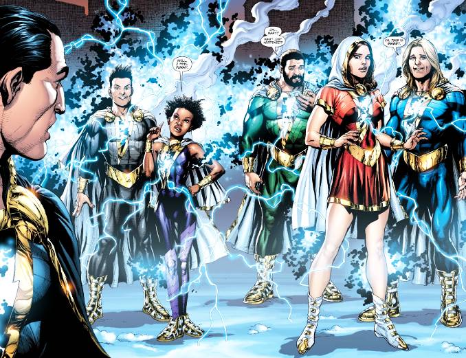 Billy Batson reprend contact avec Freddy, de la fratrie Vasquez. Ils utilisent ses pouvoirs pour s’amuser, par des blagues à autrui ou acheter des bières. Mais Billy fait aussi le bien quand il le faut, apprend le sens des responsabilités. Il est alors attaqué par Black Adam puis le Dr Sivana, qui diffèrent de leurs versions antérieures. Black Adam est à l’origine un précédent Champion, violent et autoritaire mais noble. Sivana est lui le cliché du savant fou. Ici, Black Adam est l’oncle d’un jeune Champion, qui lui offre certains pouvoirs après une blessure. Black Adam le tue pour s’emparer du reste, dans une vaine quête vengeresse. Le Sorcier l’a ensuite enfermé pendant des milliers d’années. Il est libéré par Sivana, un archéologue avide de pouvoir qui obtient une « vision magique » après cette libération.