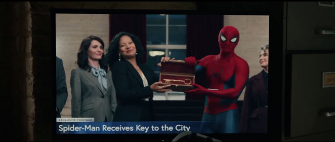 Parmi les images les plus curieuses de la bande-annonce, il y a ce moment où Spider-Man reçoit les clés de la ville. Sur le coup, on se demande surtout à quel moment cela se situe dans la chronologie du MCU. Cela peut très bien appartenir à un flashback, ou à un montage destiné à résumer une période plus lumineuse. Pourtant, cette scène peut aussi laisser entendre qu’un changement politique a eu lieu à New York, et que Wilson Fisk n’occupe peut-être plus le fauteuil de maire. Le détail qui fait un peu mal, lui, se trouve ailleurs. Ned et MJ regardent la séquence à la télévision, sans sembler comprendre qu’ils ont autrefois compté parmi les personnes les plus importantes de la vie de Spider-Man. Rien que ça, c’est un petit coup de couteau discret.