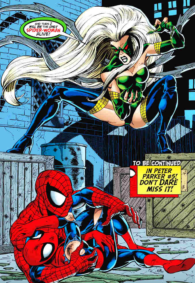 L’araignée à l’origine des pouvoirs de Spider-Man n’a pas fait qu’une seule victime : elle a aussi mordu Cindy Moon, alias Silk. Pendant des décennies, Ezekiel l’a dissimulée aux yeux des Héritiers et de Morlun. Peter Parker finit par découvrir son existence. D’ailleurs, nos 2 « araignées » sont irrésistiblement attirée l’une à l’autre dans une période un peu curieuse pour Peter. Fort heureusement, Cindy Moon finit par évoluer et prend le pseudo de Silk, une autre Spider-Woman.
