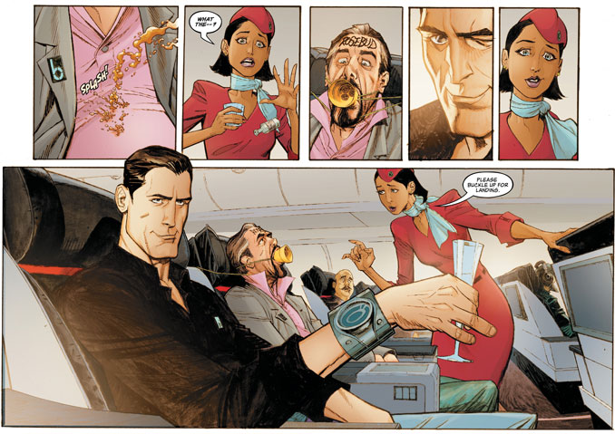 Graphiquement, la première partie de Stand Still doit énormément au travail d’Andrew Robinson. Son dessin donne à l’album une vraie identité. Il y a de l’élégance, du nerf, de la gueule. Les planches profitent du format horizontal pour déployer une belle ampleur. On pense parfois à une mise en scène très cinématographique, avec un goût évident pour les cases étirées, les compositions panoramiques et les visages chargés en tension. D’ailleurs, c’est ce souffle visuel qui permet au récit de garder un vrai pouvoir d’attraction, même lorsque le scénario commence à montrer ses limites.