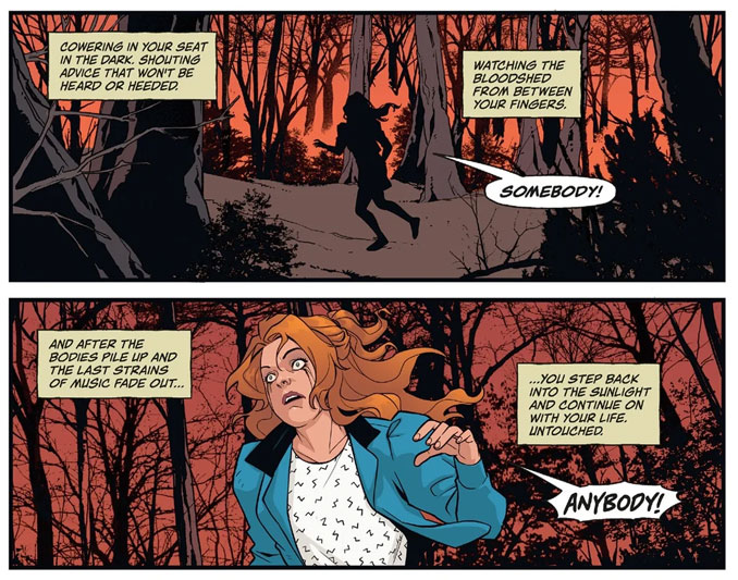 Avec « Stranger Things : Tales From Hawkins », on plonge dans une série d’histoires qui détaillent les zones d’ombre de cette petite ville de l’Indiana où (soi-disant) il ne se passe jamais rien. Sauf que dès l’automne 1983, deux chasseurs qui partent dans les bois avec un fusil et un pack de bière vont vite comprendre qu’ils ne sont pas seuls. Et pendant que la bête tapie dans l’obscurité s’occupe de leur cas, ailleurs, Murray Bauman remue ciel et terre pour comprendre ce qui est arrivé à Barb Holland. Encore faut-il que le bonhomme parvienne à mettre son esprit paranoïque en mode silencieux cinq minutes, ce qui relève déjà du miracle. Chacune de ces histoires ajoute une petite pièce au puzzle que constitue la petite ville d’Hawkins, et confirme que vivre ici, ce n’est jamais juste vivre dans une petite ville tranquille.