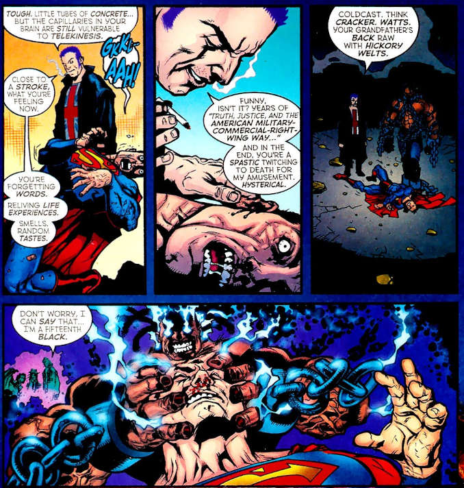 Superman utilise ce combat pour démontrer pourquoi des héros comme l’Élite, avec leurs méthodes extrêmes, ne devraient jamais être glorifiés. À travers sa résilience et sa capacité à triompher sans sacrifier ses principes, Superman rappelle au monde entier que le pouvoir sans responsabilité est une menace, et non une solution. Une bataille mémorable, qui prouve que la vraie force réside autant dans les valeurs que dans les poings.
