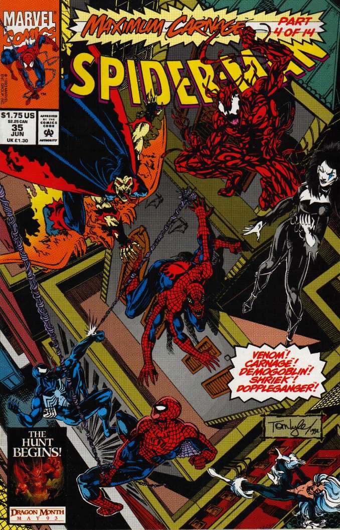 Au milieu des années 90 le destin de Tom Lyle est ensuite lié à Spider-Man puisqu’il sera l’un des artistes attitrés sur les web série pendant la Saga du Clone juste après avoir participé au méga cross-over Maximum Carnage. On doit notamment à Tom Lyle le costume de Scarlet Spider porté par Ben Reilly avec le fameux sweat à capuche bleu sans manche. Tom Lyle officie ensuite sur le 3e volume du comics Punisher, écrit par John Ostrander. Enfin il écrit et dessine une minisérie sur Warlock.