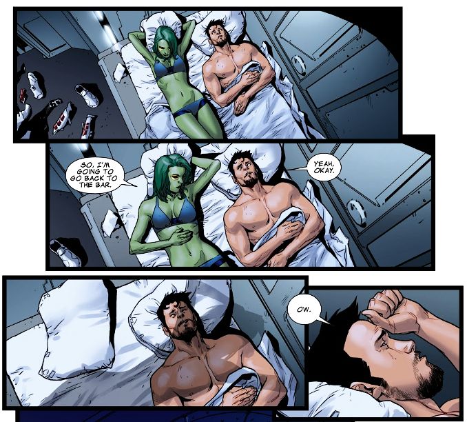 Lors de leur rencontre, Gamora, l’extraterrestre la plus dangereuse de l’univers, n’a pas pu résister au charme de Tony Stark puisqu’on les retrouve tous les deux rapidement au lit ! Une relation de très courte durée puisque leur aventure ne dure… qu’un seul épisode. ■
