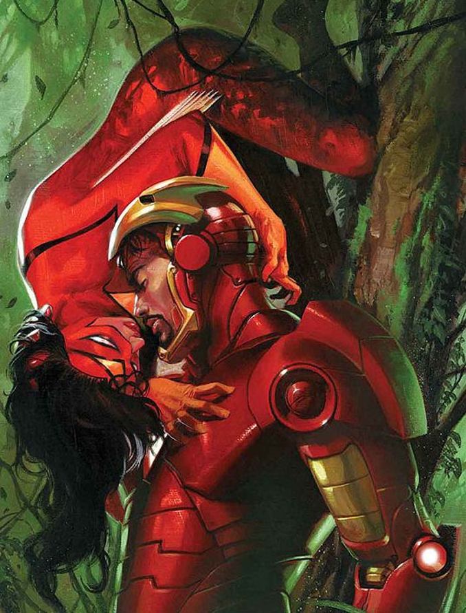 Lors de la fête de Noel, alors que Tony Stark et Spider-Woman alias Jessica Drew travaillent ensemble au sein des New Avengers, Tony emmène cette dernière sous le gui et l’embrasse. Un baiser qui amènera selon certains dialogues un peu plus loin. Ce qui est gênant dans la limite où cette Jessica Drew était certainement une Skrull infiltrée.