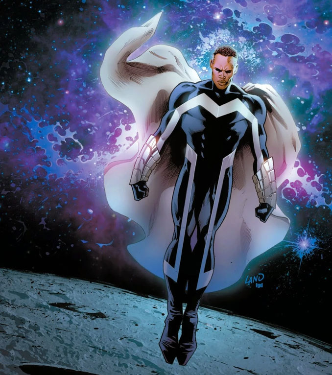 Scientifique brillant spécialiste de l’antimatière, le docteur Adam Brashear se retrouve pris dans une explosion d’une violence assez peu recommandée par la médecine du travail. Sauf que, chez Marvel, ce genre d’accident fabrique rarement de simples arrêts maladie. Adam Brashear gagne la capacité d’absorber l’antimatière. Cette énergie alimente sa force surhumaine, sa quasi-invulnérabilité, sa capacité à voler et ses pouvoirs de manipulation énergétique. Bref, Blue Marvel coche presque toutes les cases du héros beaucoup trop puissant pour rester discret.