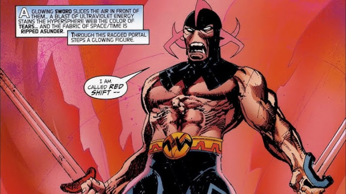 Red-Shift, introduit dans Galactus: The Devourer en 1999, est un héraut atypique, principalement connu pour sa préférence à nourrir Galactus exclusivement avec des planètes habitées. Contrairement au Silver Surfer, qui cherchait à minimiser les pertes de vies, Red-Shift n’avait aucune hésitation à sacrifier des formes de vie intelligentes. Cette méthode radicale l’amena rapidement à croiser la route du Silver Surfer, qui tenta de le convaincre de changer d’approche. Ce fut évidemment l’occasion d’un affrontement épique.