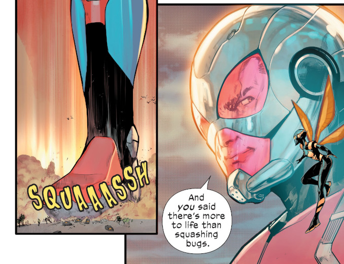 Si Henry Pym était un héros réticent, Janet Van Dyne, elle, était destinée à voler haut et fort en tant que la Guêpe. Toujours tournée vers un avenir meilleur, c’est elle le véritable pilier de son duo avec Hank. Dans The Ultimates #1, Janet tombe sur les Origin Boxes que Hank cachait. Et là, pas d’hésitation : elle saisit l’opportunité et balance un « J’en ai marre d’avoir peur », avant de s’élancer vers son destin.