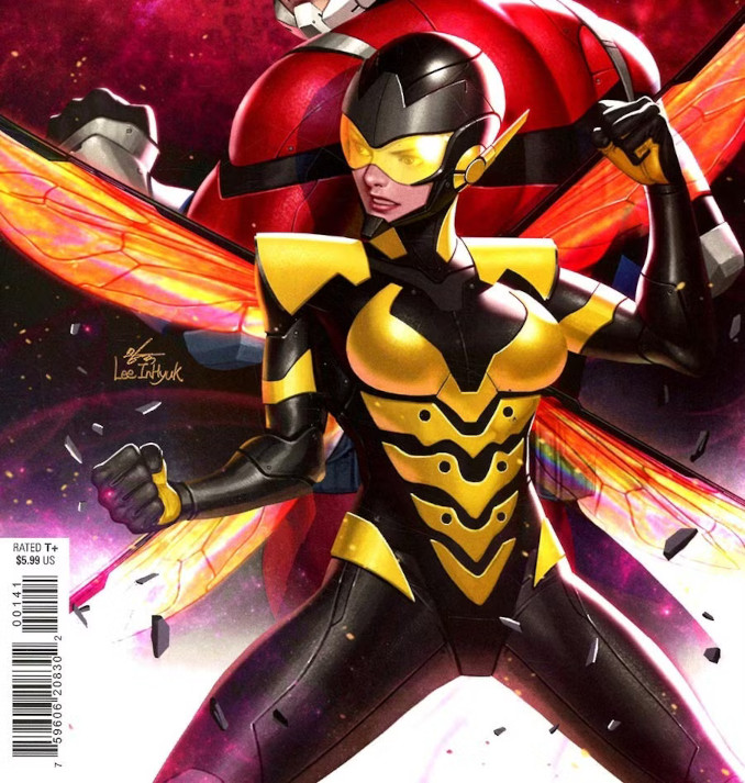 Grâce à son pouvoir, elle peut rétrécir à la taille d’un insecte tout en conservant sa force (oui, elle peut frapper comme un tank, mais en mode mini). Son costume, conçu par Tony Stark, est équipé d’ailes bio-synthétiques qui lui permettent de voler aussi vite qu’une balle quand elle est en mode miniature. Mais ne vous fiez pas à sa taille : Janet est une force de la nature. Elle a marqué l’histoire des Ultimates d’une manière brutale et inoubliable : dans Ultimates #6, elle s’est laissée avaler par Fat Cobra… avant de grandir à l’intérieur de son estomac pour le faire exploser de l’intérieur. Oui, vous avez bien lu. La Guêpe ne pique pas… elle DÉTRUIT !