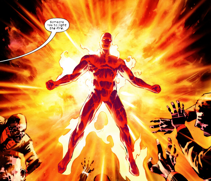 Dans l’Ultimate Universe, ses pouvoirs n’ont pas encore été totalement définis, mais si on se fie à son homologue de la Terre-616, Hammond n’est pas juste un homme en feu. Il peut enflammer l’intégralité de son corps sans se consumer, projeter des rafales de flammes ultra-concentrées et manipuler la chaleur ambiante et potentiellement rendre ses flammes radioactives.