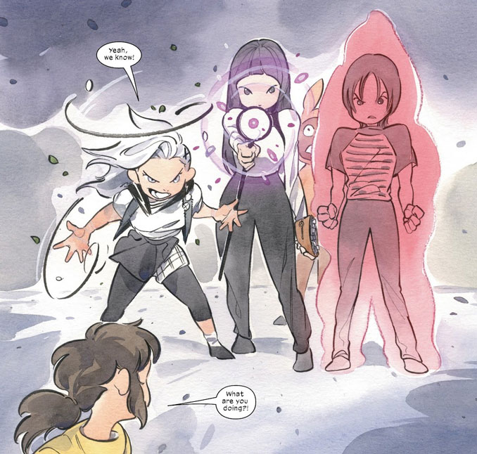 Visuellement, Ultimate X-Men est une claque. Peach Momoko assure à la fois le dessin et la couleur, avec une identité graphique immédiatement reconnaissable. Les personnages affichent des traits doux, presque fragiles, contrastant avec la noirceur de certaines situations. Les séquences horrifiques, elles, surgissent brutalement, avec des compositions dérangeantes et une gestion du vide particulièrement efficace. L’utilisation de teintes aquarellées, parfois désaturées, renforce cette impression de malaise latent. Ce travail artistique n’est pas qu’un écrin esthétique, il participe pleinement à la narration et à l’ambiance du récit.